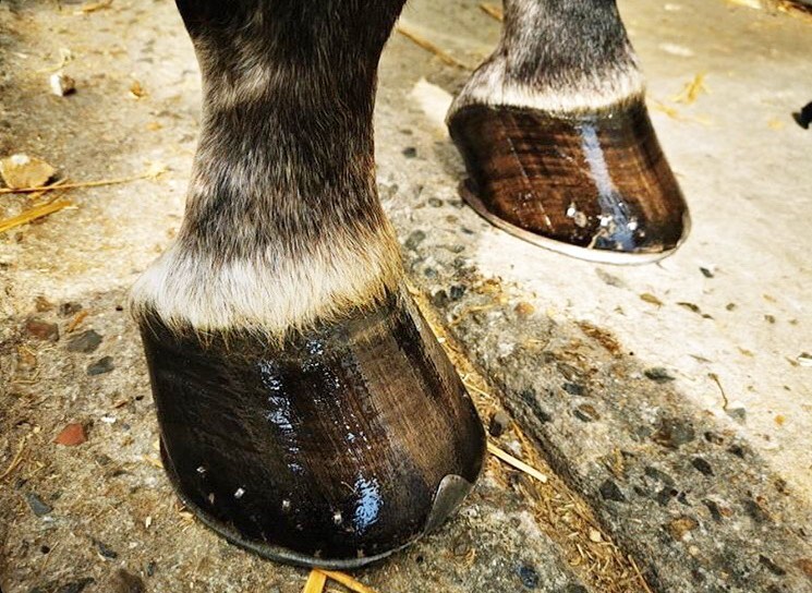- Pour un entretien en période sèche ou pour des chevaux évoluent sur des sols durs appliquer 3 à 4 fois par semaine en enduisant bien l’intérieur et l’extérieur du sabot jusqu’à la couronne, renouveler si besoin.